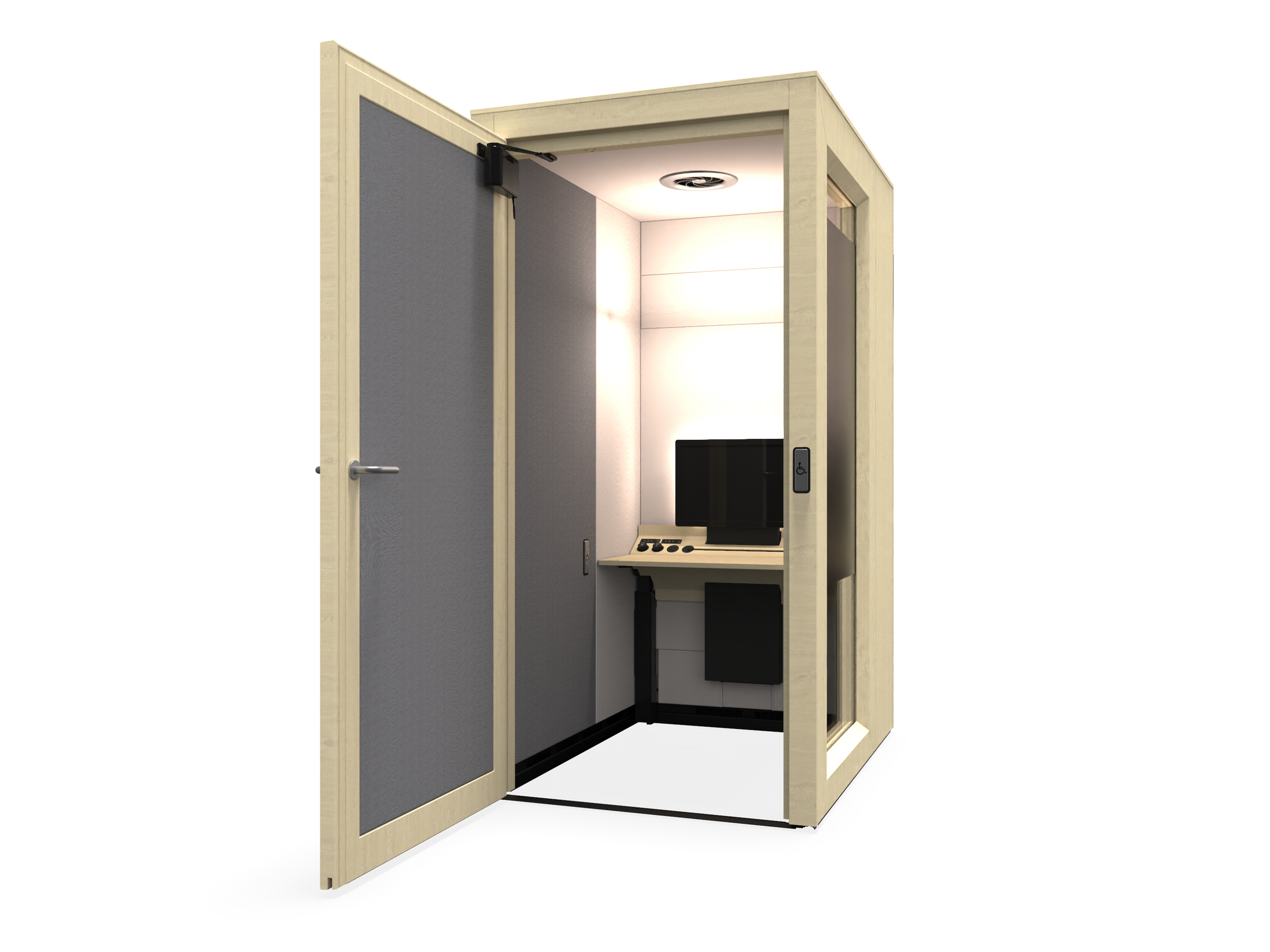 High performance acoustic materials give a decibel reduction rating in excess of 35dB. A unique acoustic seal technique seals the entire structure to the floor, preventing any loss of acoustic integrity.