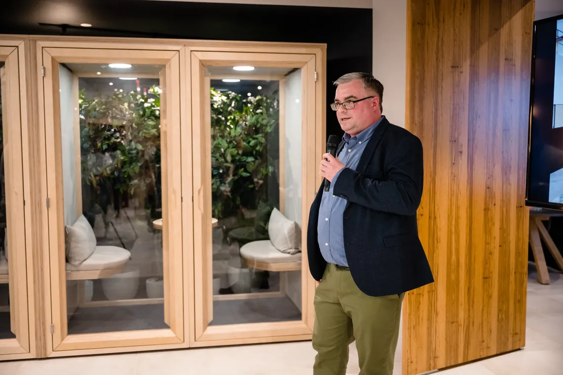 From left: Alex Harvey, Global Sales Director at Spacestor and Mark Brungo, AIA, Studio Director, Principal at Gensler, at the ‘Open House Project'
