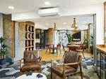 With a nod towards residential design, a tactile material palette has been used, layered with lush greenery, local art pieces and a diverse collection of Carolyn's personal interior touches. Black metal glazed partitions and exposed concrete flooring provides a stunning contrast.