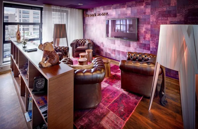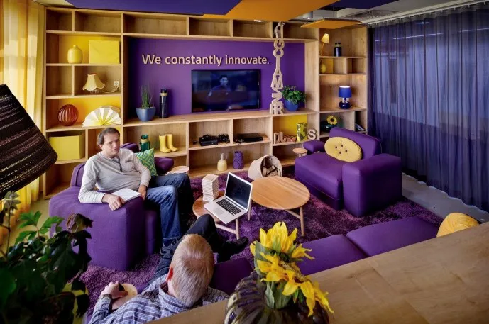 One of the most striking colours used is purple. According to colourpsychology, purple has many positive associations: it’s calming, uplifting and can trigger creativity. In one of the innovative hub spaces accents of purple flirts with yellow, which is said to stimulate inspiration and vitality.