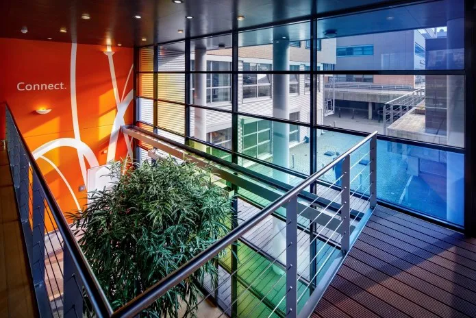 Liberty Global is an American telecommunications company that has made an appearance on Forbes’ World’s Most Innovative Companies list. Founded in 2005, the business operates in 30 countries with over 30,000 employees worldwide, so it was crucial for the interior designers, Evolution Design, to create “one globally unified organisation”. In order to do this, they developed a new architectural identity which included a new graphic and colour concept throughout the campus.