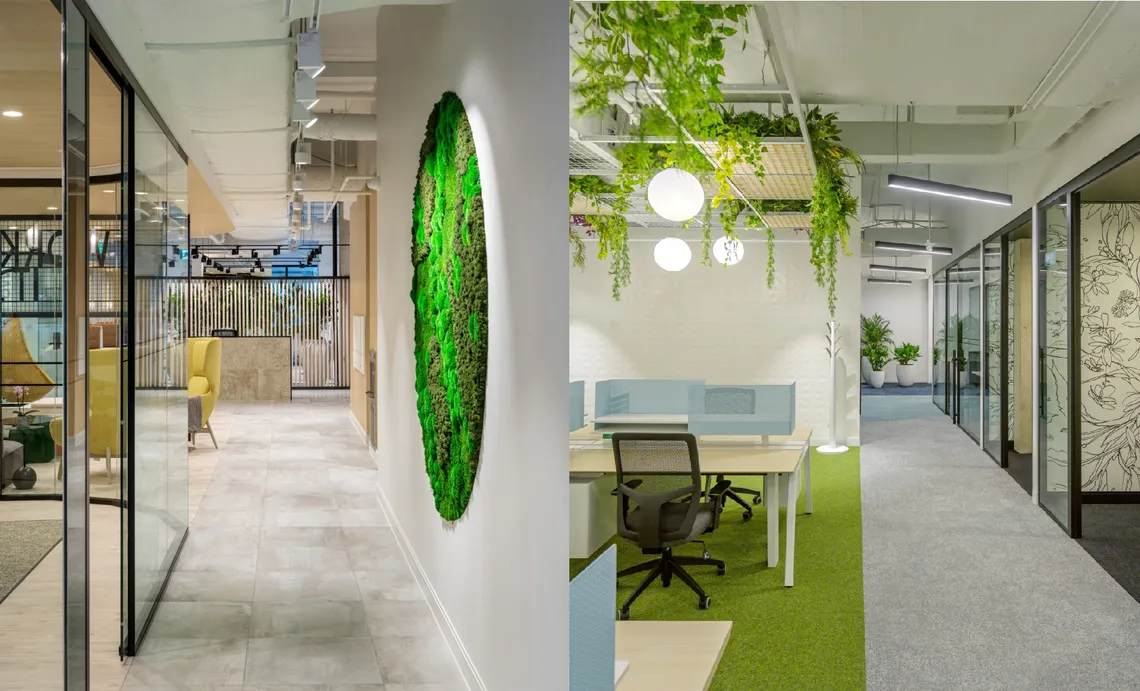 In order to create a seamless synergy with nature and natural elements, they adopted the biophilia principle by incorporating extensive greenery throughout the walls, ceiling and freestanding elements, further promoting a sense of sustainability within the space. Adding special furniture to the patio provided the user with ease of accessibility to indoor and outdoor environments, without having to leave the premises-bringing to life both a literal and figurative connection to nature. To further cultivate a sense of aesthetic appeal and fluidity within the space, an economical carpet was installed in a unique pattern that mimics nature’s natural organic forms.