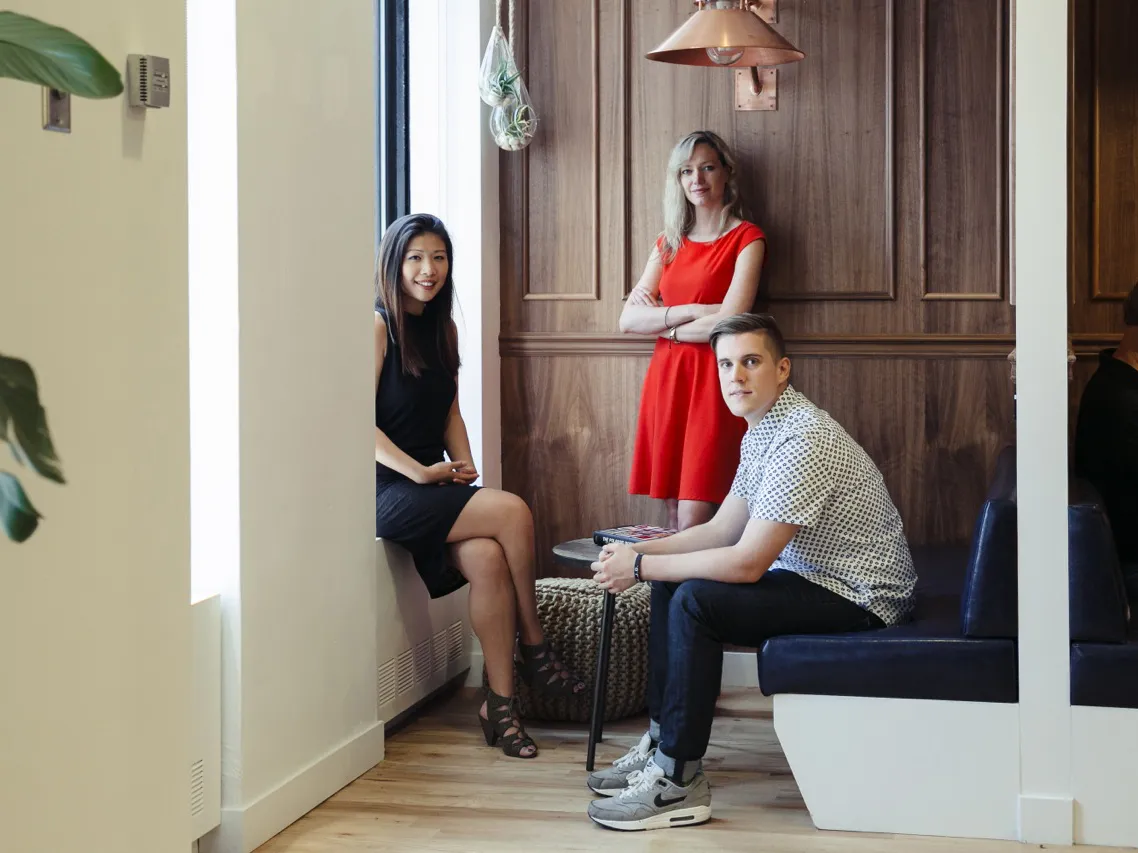 As one of the world’s leading provider of coworking spaces, WeWork has a carefully developed, well honed approach to the design process that makes for a great case study. For every new building they take on, designers Cindi Leung and Kimberley Kolkovich, who both have a background in interiors, begin drawing up plans before the lease is even signed. They consider the whole space from the top down, beginning with the beams, the glass and the walls and bringing in their colleague Jeremiah Britton, who has a background in graphic design and illustration, to work on the wallpapers, murals and other visuals. These three designers start with a grand vision and follow it all the way through to the furniture, the fittings and accessories and the smallest details.