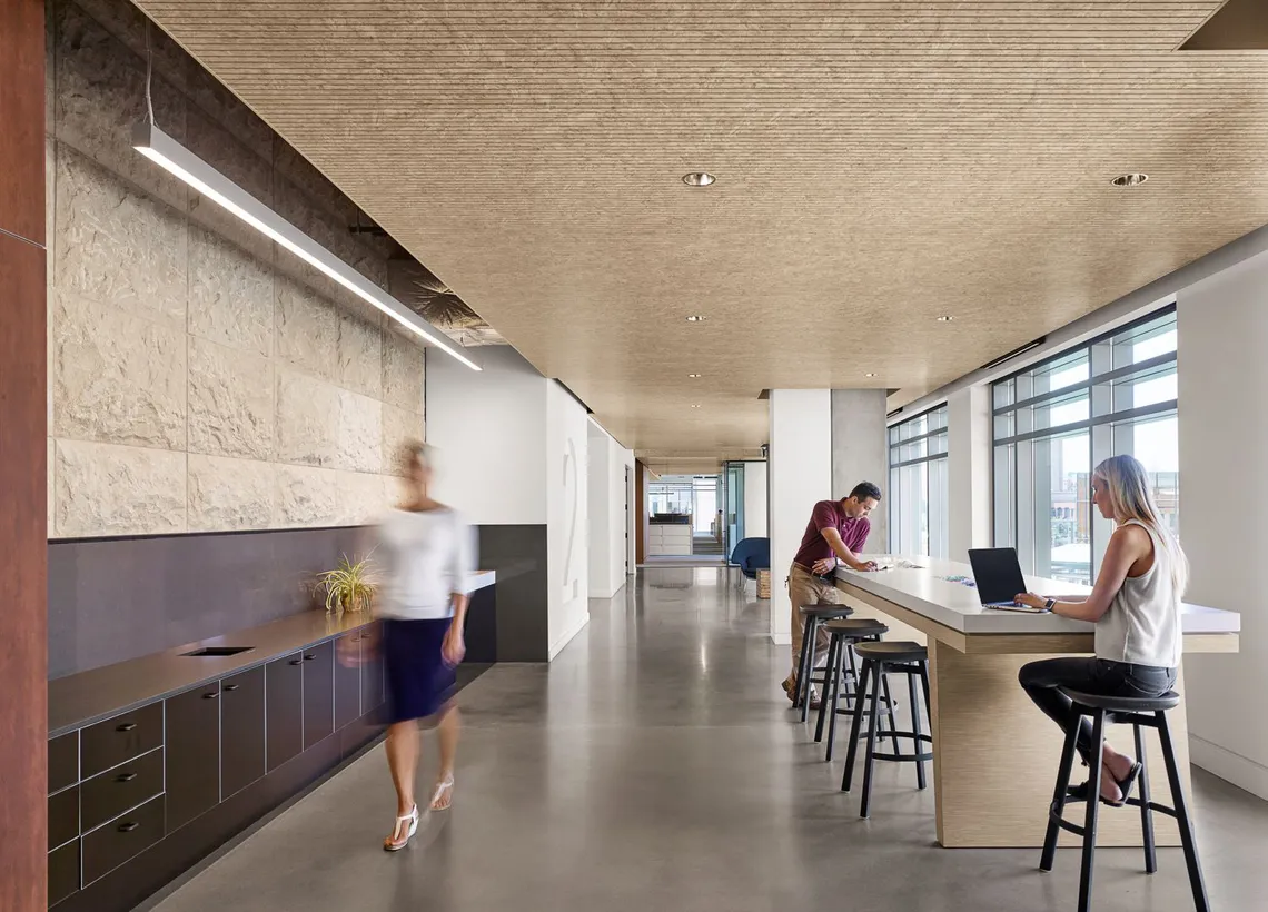 “It introduces minor obstacles to encourage beneficial behaviors such as social interaction,” she explains. Think fewer kitchenettes and instead, one central, well-designed kitchen to increase movement and chance encounters. “Spontaneous conversations between people who may never run into each other otherwise” are exactly the kinds of interactions she’s looking to spark.