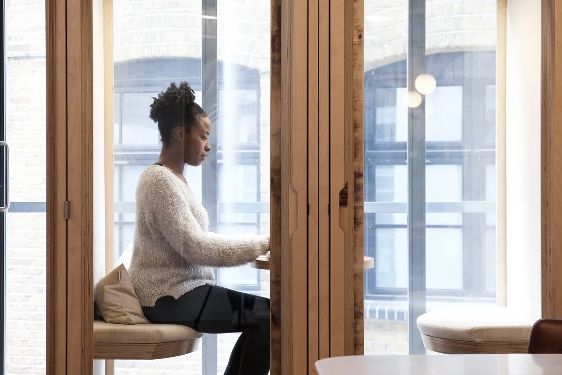 For enclosed booths such as Spacestor’s Video or Phone pods in the Residence family, they are designed to be soundproof, meaning a normal conversation cannot be overheard outside the pod, and the noise of a bustling office cannot interrupt or interfere with any meetings inside the pod.