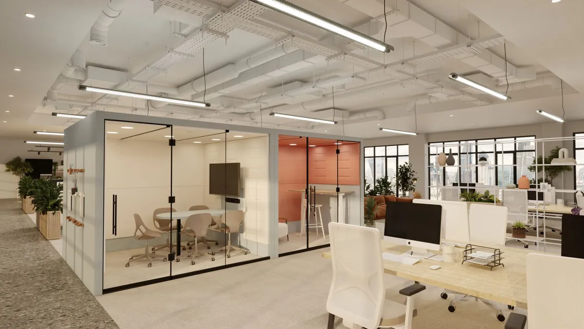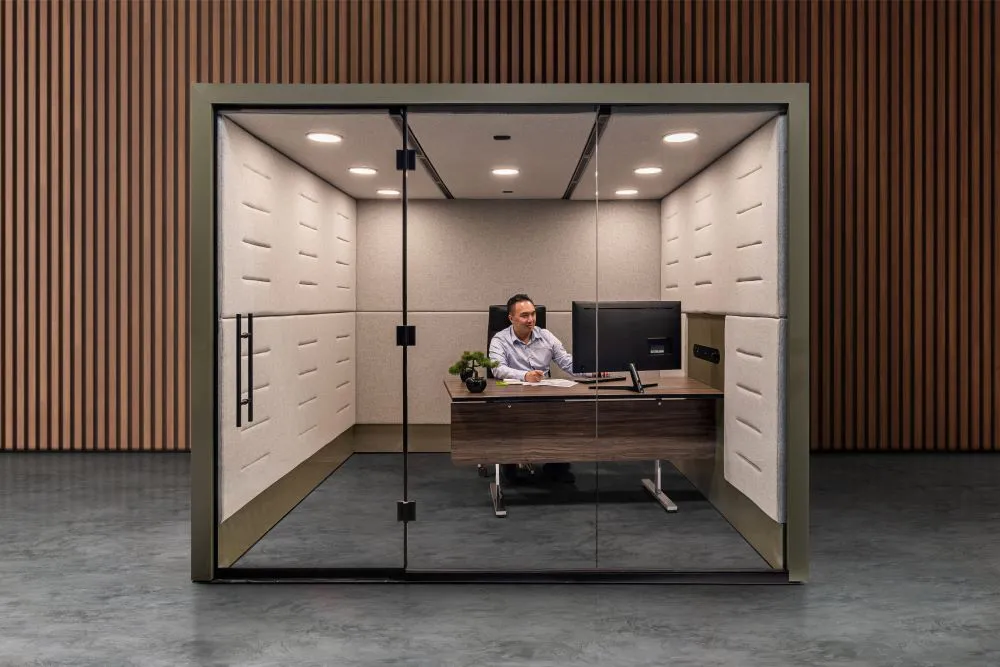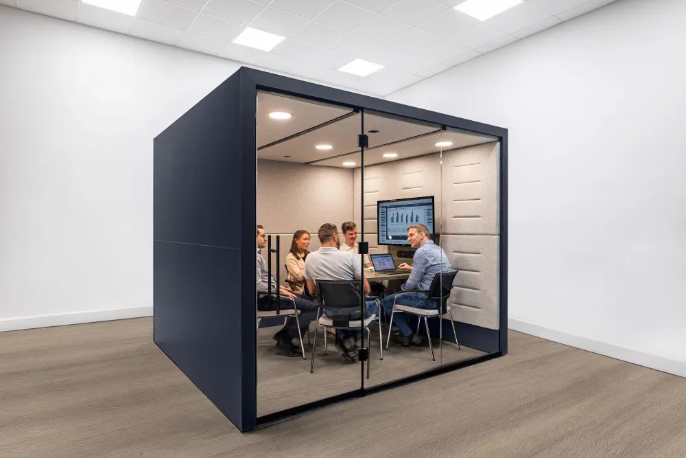 Portals Room addresses these challenges by delivering a space-efficient, customizable meeting room that effortlessly adapts to various needs. Designed to accommodate meetings of four to six people or serve as an exclusive solo office space, Portals Room is equipped with integrated power and charging options, user-adjustable lighting, a table, and a screen. This plug-and-play solution ensures private collaboration and a seamless meeting experience, making it an ideal choice when supporting dynamic demands of a global workplace strategy.
