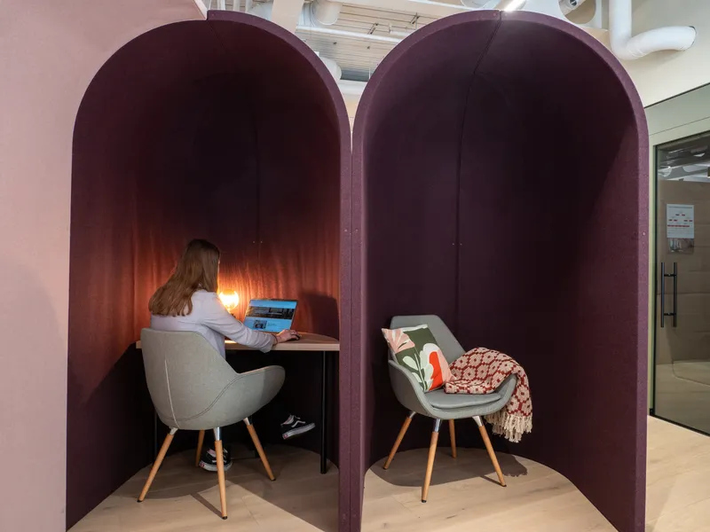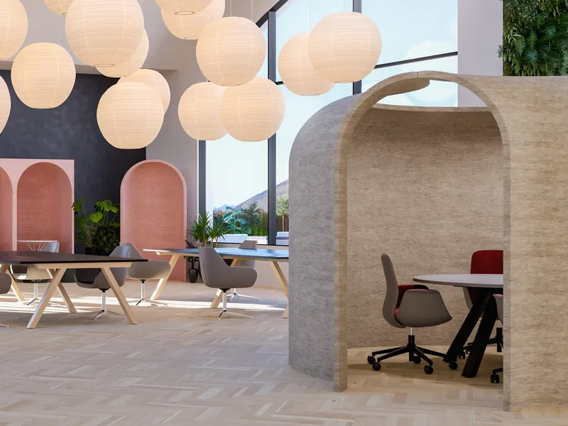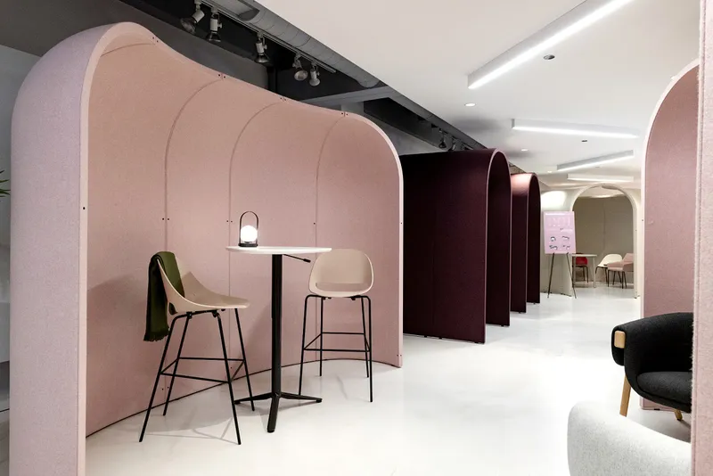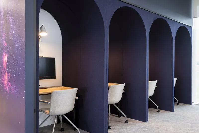 Spacestor worked closely with Area to provide semi enclosed working space created from one of their newest and most innovative products, Aeonica