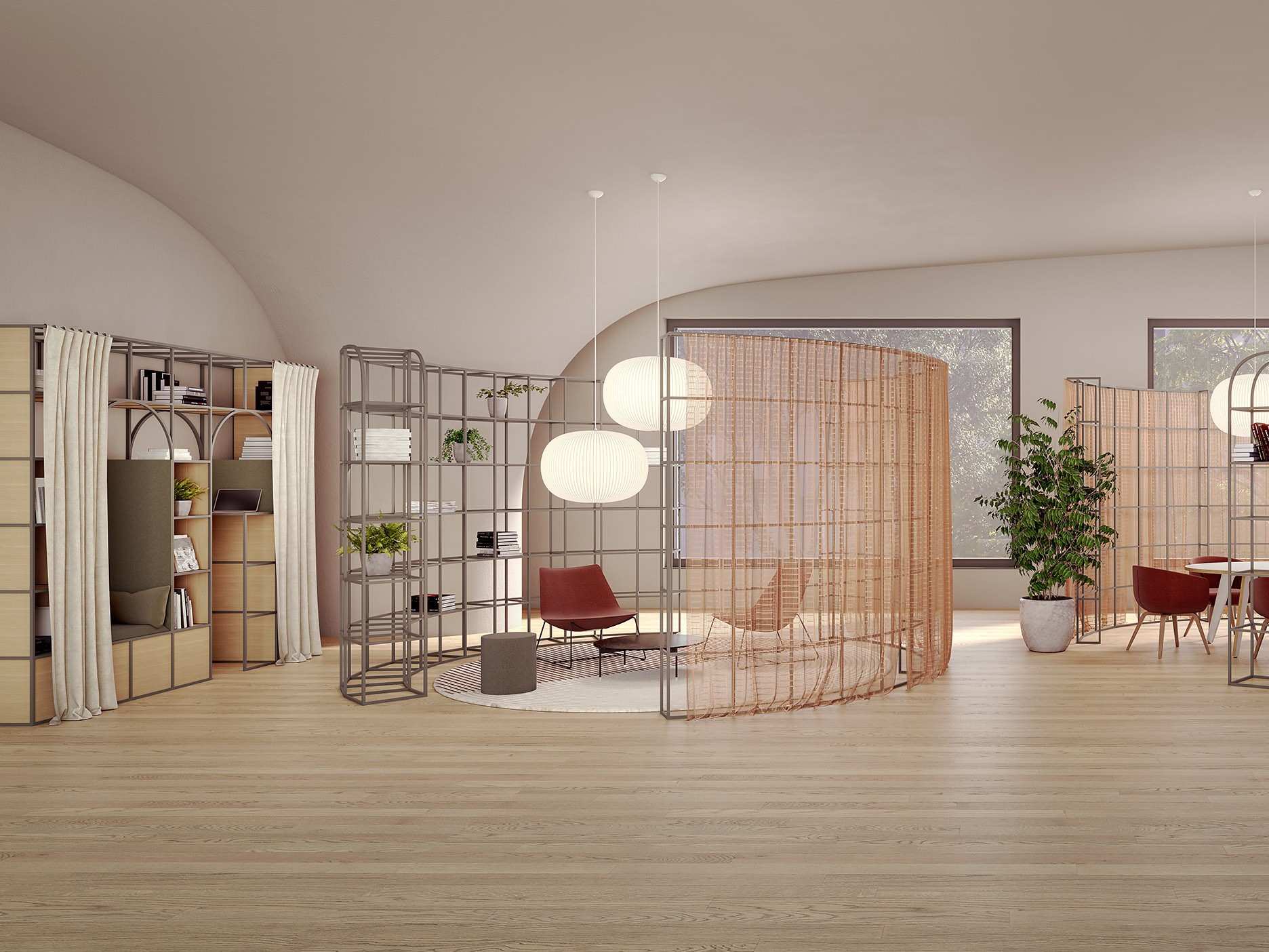 Palisades II is hugely flexible and can be customized to your suit any interior with biophilia, additional storage, in-built seating nooks, acoustic panels, TV alcoves and many more accessories. The system can grow to any size, creating endless new architectures.