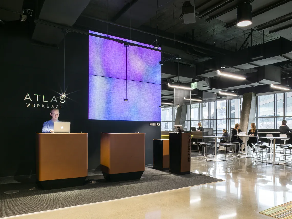 As you would expect, design and technology are key to ATLAS Workbase office spaces. The interiors are designed in conjunction with Gensler and Open Square, and created with partners including FedEx Office® and Philips Lighting.