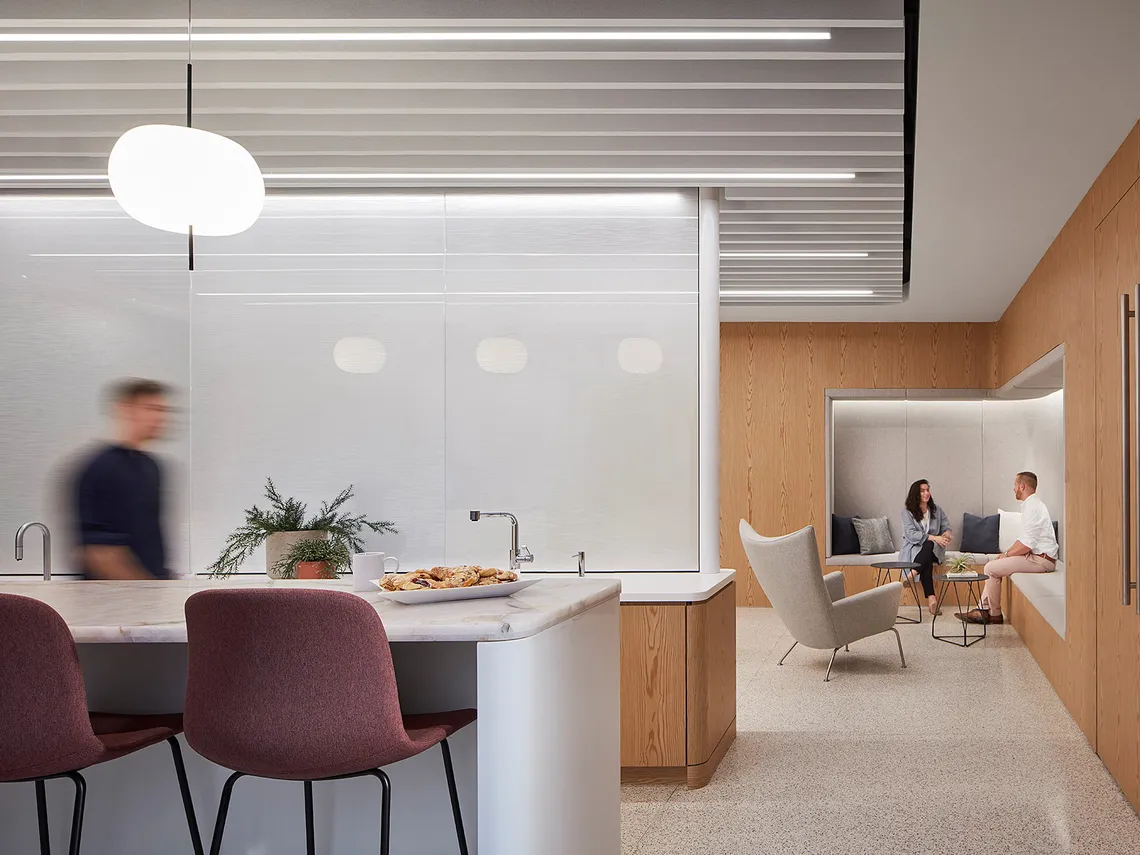 Interior Architects took all of this into account when designing the company's new offices in Chicago, resulting in a warm, soothing and familiar workplace that everybody can feel at home in. Staff can choose where they’d like to work, and in order to help facilitate this agility we installed a wall of customised HotLockers here. They’re numbered in deep orange in the company’s own font, and provide stylish personal storage for everybody working at this prestigious 156 year-old Swiss firm. As Interior Architects explain, “A bank of lockers, one for each staff, is discreetly woven into the open office design with minimal impact. Well received, this new way of working helps attract and retain talent and inspires staff to come to the office.”