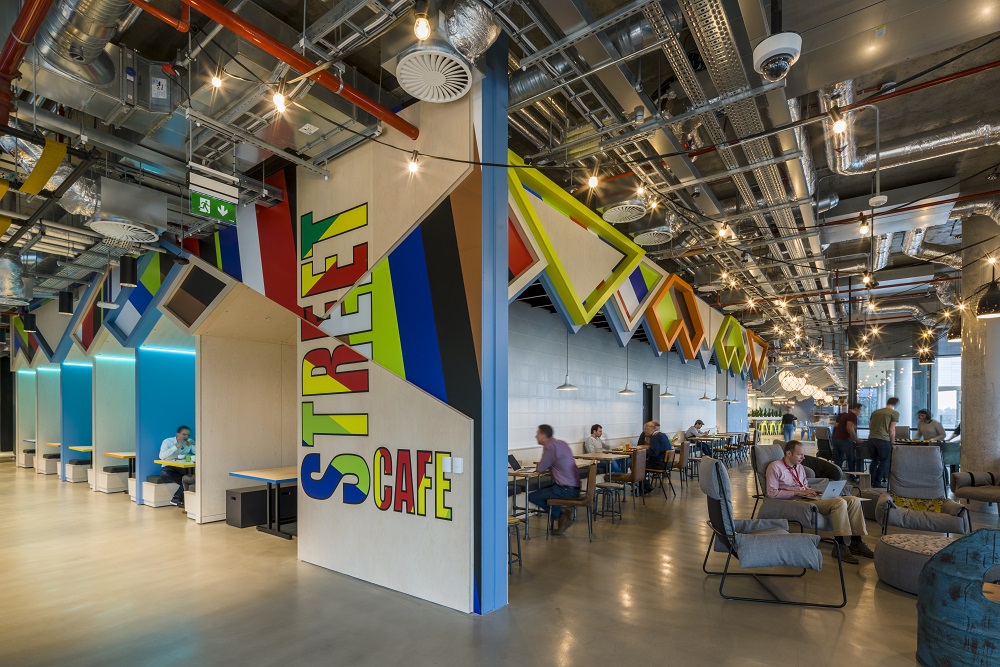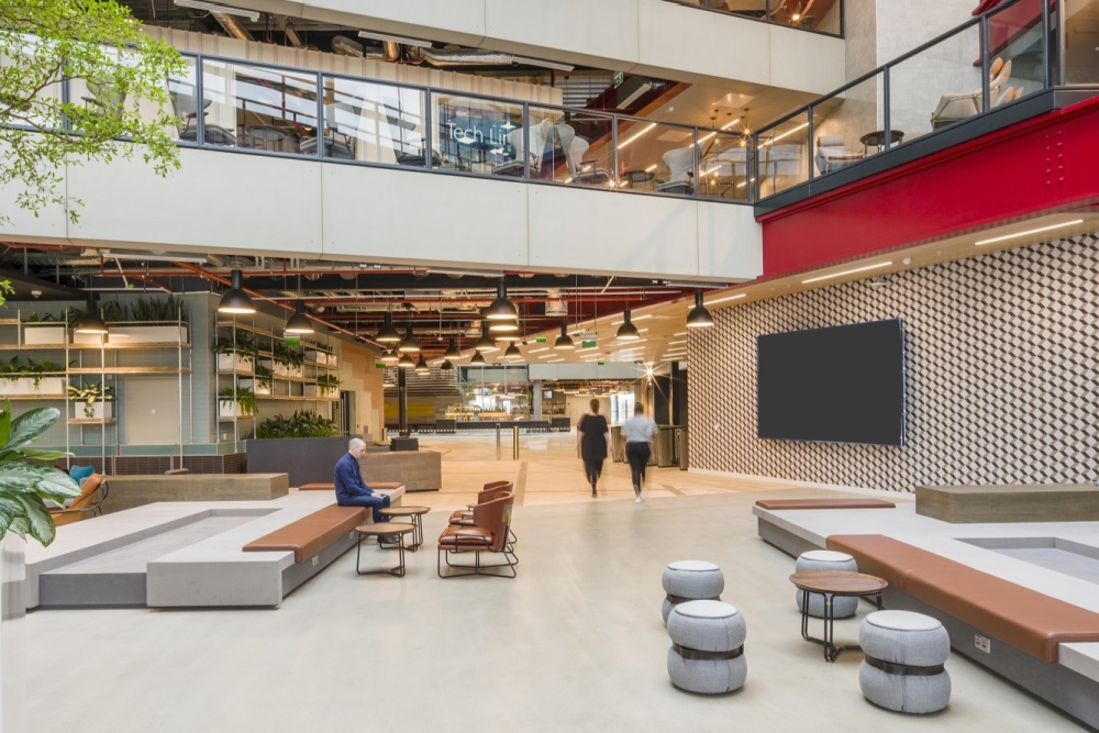 The campus incorporates sustainable features such as rainwater harvesting, on-site spice and food cultivation through hydroponic technology, and rooftop beehives to harvest honey. These eco-friendly initiatives align with the creative food and beverage strategy, designed by Tricon. The programme was unique, maintaining values of unity and creativity through building multiple F&B counters into one level of this experiential ‘world’. Offering a range of choices and flexibility for lunch breaks, the facilities include an Italian Quarter serving authentic fired pizzas with a view overlooking the racecourse, a Street Food kitchen for quick and quality food, and the Farmers’ Market offering with a deli and wholesome breakfast options. Knead freshly bakes bakery goods, stamped with the company's logo and Cortado, the office coffee bar, roasts a bespoke blend of coffee beans onsite which are unique to the company.