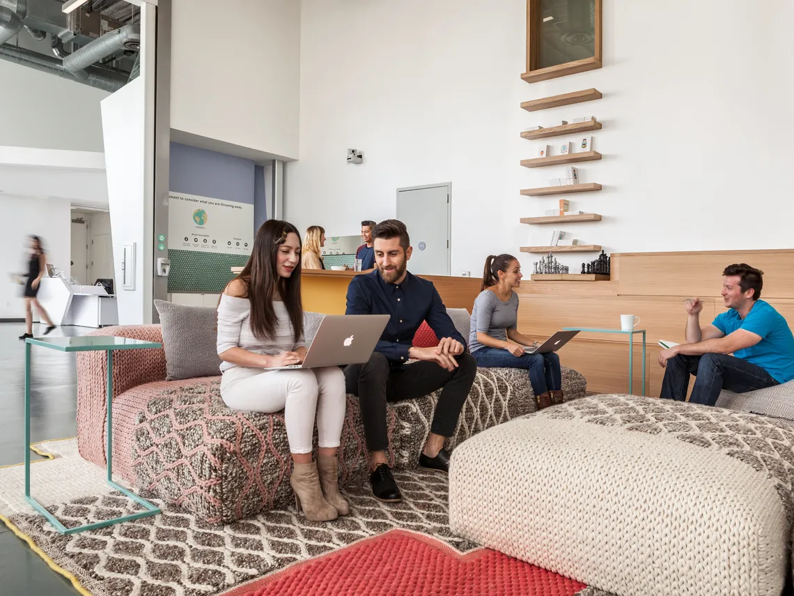 The new headquarters of California's meditation app provider, Headspace, designed by Kelly Robinson, feature the Railway Carriage reflecting the energetic vibe of the company.