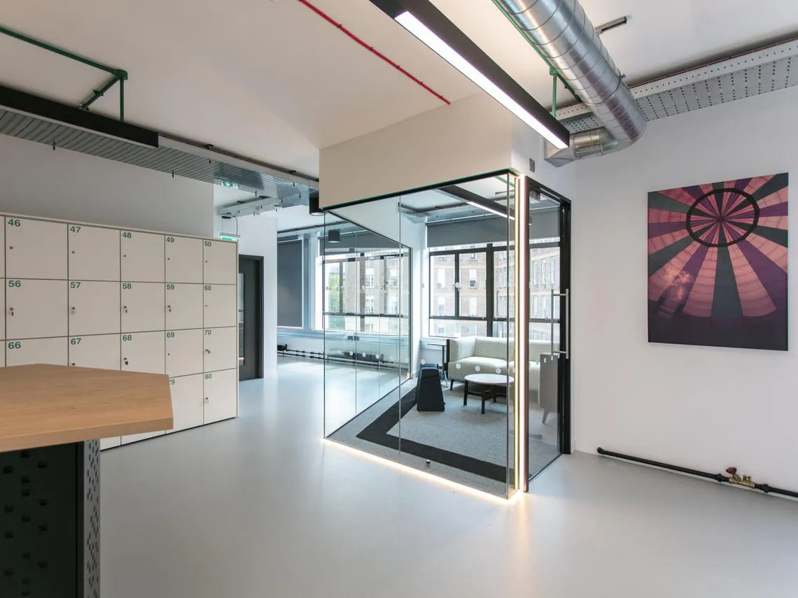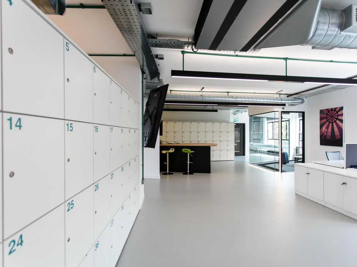 Spacestor were pleased to supply NEX with a pair of pine Railway Carriage meeting pods upholstered in black with a bright turquoise stripe, a couple walls of HotLockers for their staff’s personal storage, and some Storagewall and Forte cupboards for office storage with a slick, modern aesthetic. “Not only is it a wow-factor workplace that will help the team to attract and retain talent in a competitive Bristol tech market,” explain Interaction’s design team, “but it has set the standard for other office designs within Programme, Bristol, and the wider South West.”