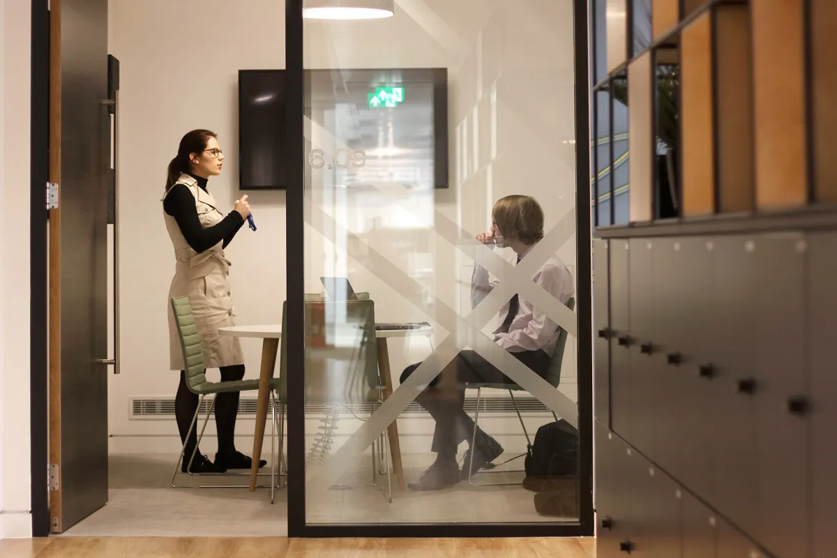 A destination workplace with a holistic approach for an innovative payment solution provider. In several banks throughout the space, built-in with Storagewall, five-high HotLockers finished in a modern black and orange look, support Bottomline employees with personal storage space as well as elevating the employee experience.