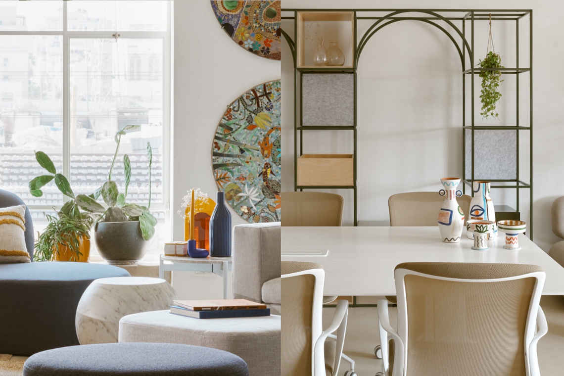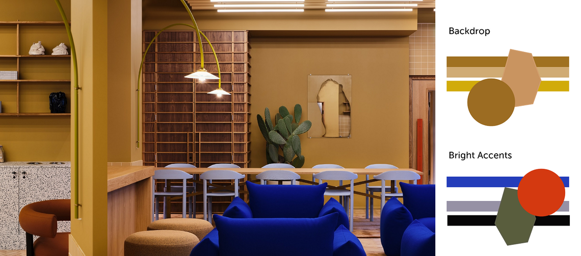 In a recent project by TOG, the cafeteria and open space were very yellow-forward in a bid to encourage collaboration and decision-making. Whilst, painting whole walls in bright colors may not be the answer for your brand as it was for TOG’s client, against a more neutral pallet, bright accents shown through ornaments can act as the small pockets of saturated rejuvenation an office needs.