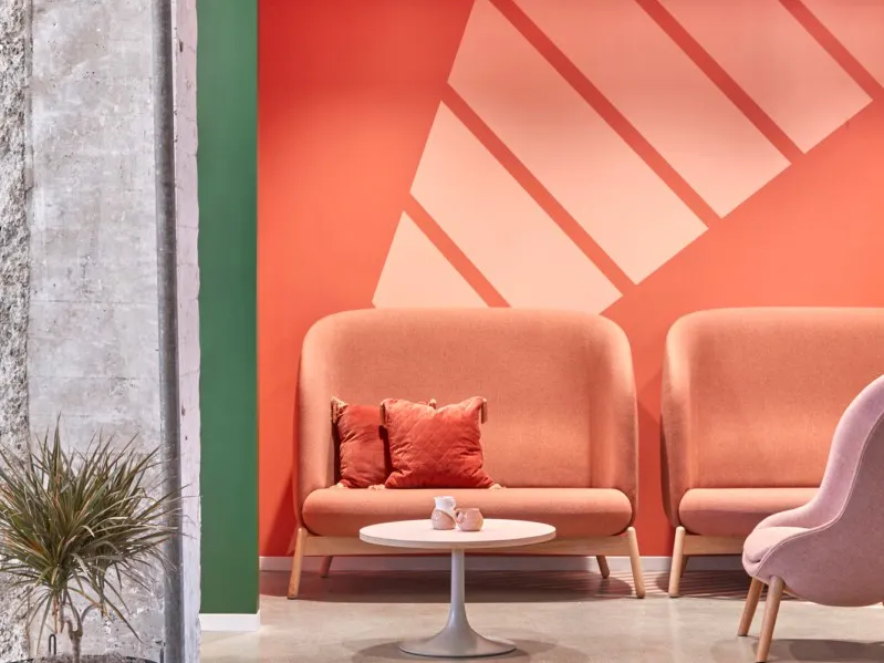 Studio O+A designed the new LiveRamp offices with strong colors to highlight the position of the sun in San Francisco, California.