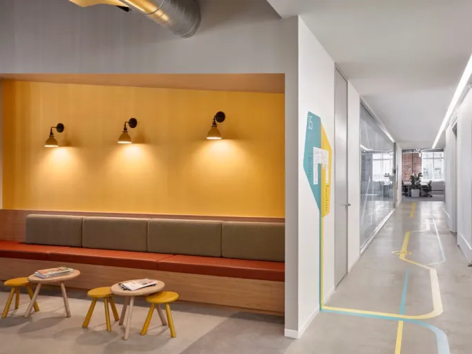 Working closely with LiveRamp’s team, O+A designers employed color as a practical orientation aid and more keenly as an expression of the company’s youthful spirit. Robust