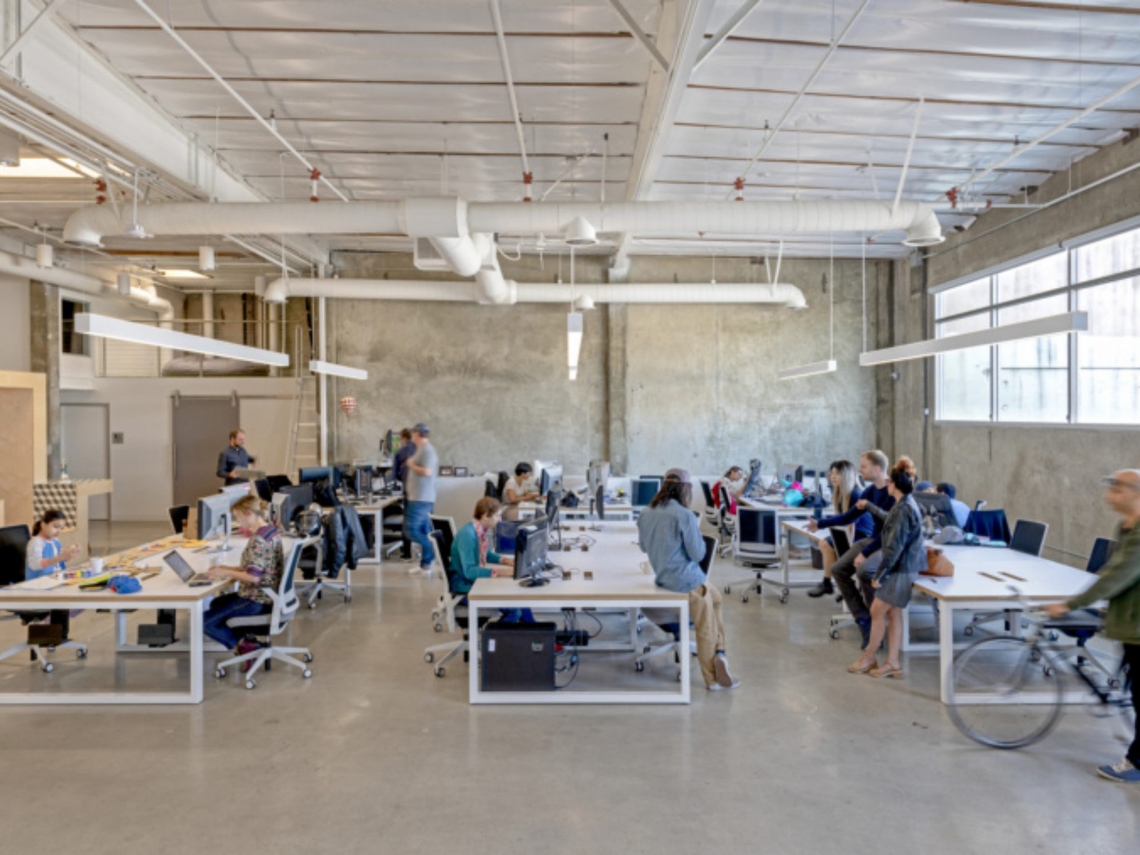 The program brief needed to address dedicated work areas for 30 animators, 6 producers with 4 private offices, 3 editing suites, 2 conference rooms, 3 new restrooms, a large and high clear area for a green screen mockup shoot area, a central pantry, a lounge and a flexible workspace.