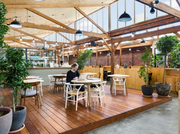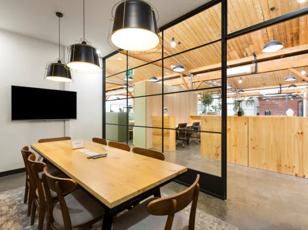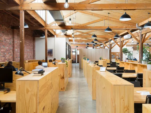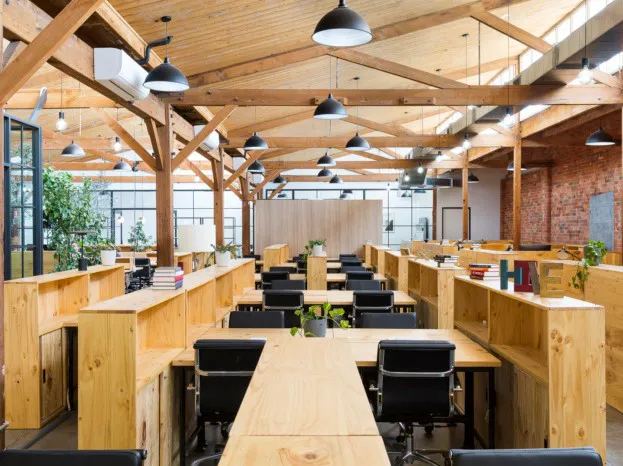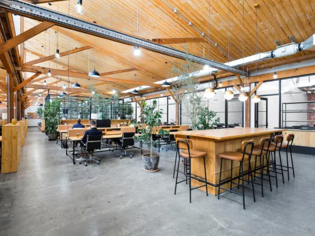 An abundance of natural light, high ceilings, and sustainable material create a biophilic environment that promotes productivity and offers a unique co-working space for businesses to thrive.