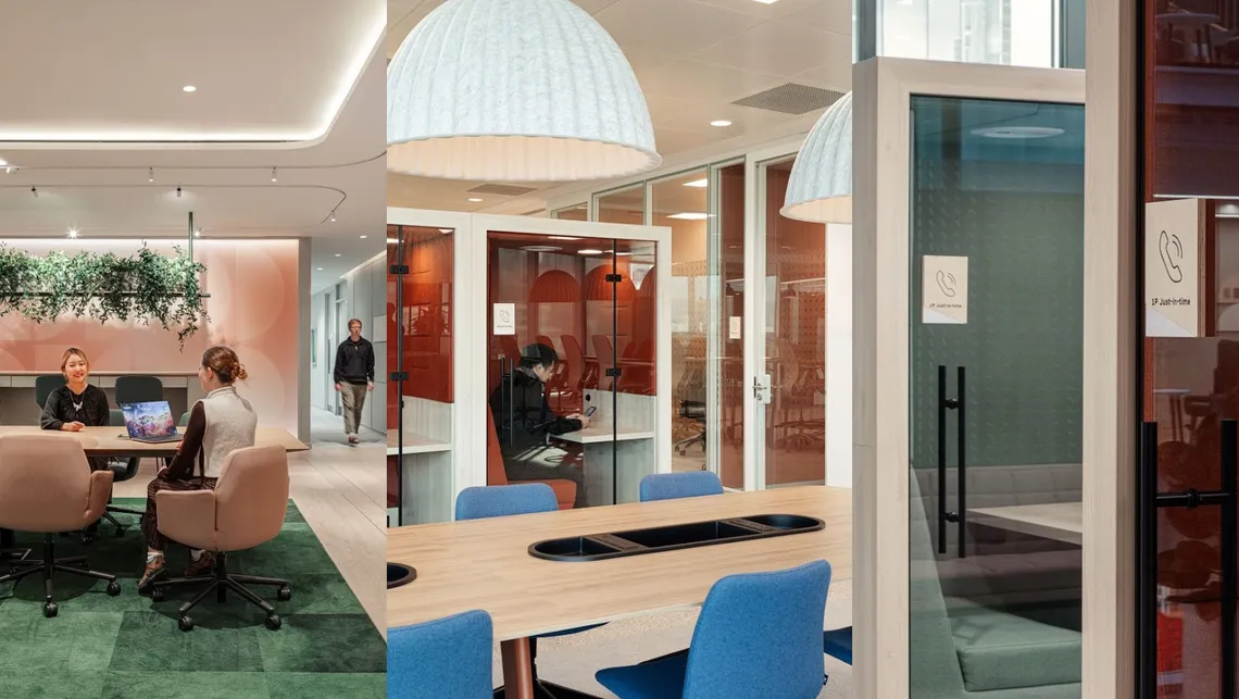 Biophilic palettes like terracotta and sage bring the outdoors in, fostering a connection to nature and boosting employee wellbeing.
