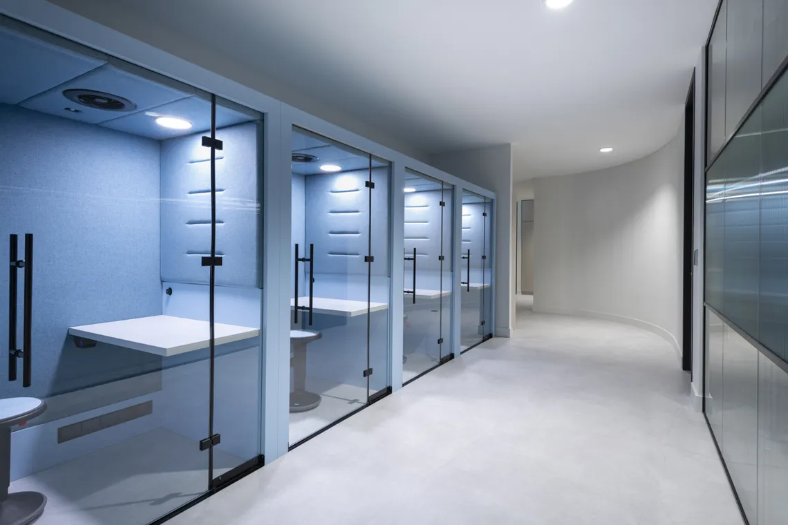 - Refined Design: Both pods now feature a sleeker interior with recessed lighting, a rounded desk for better ergonomics, and back panel controls that keep the space clear and intuitive.