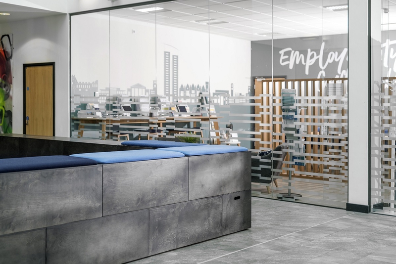 A bold and modern fitout at Chingford Foundation School showcasing our Bleachers, Railway Carriages and Mono Desking