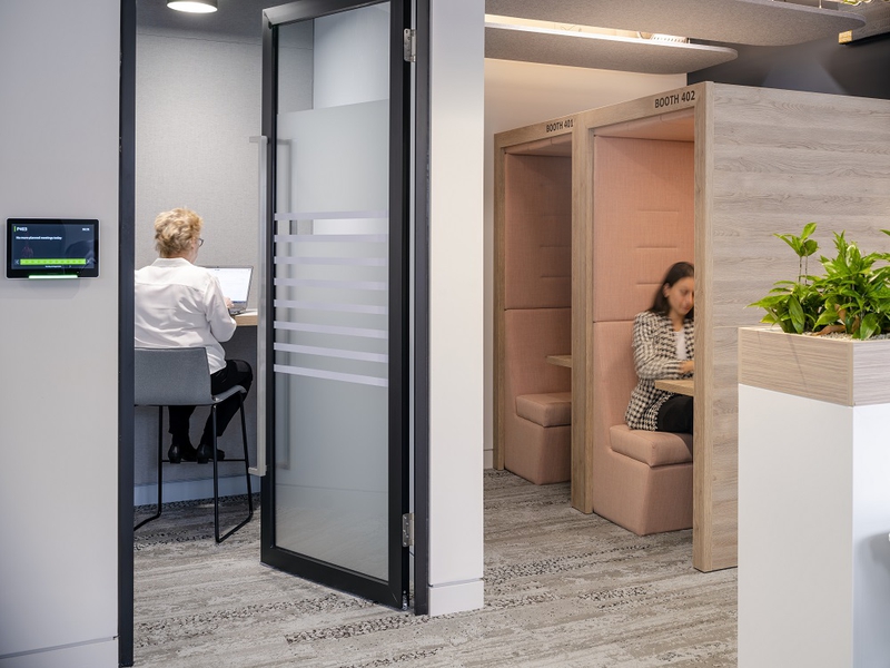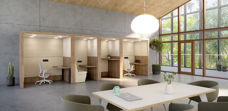 Portals is a flexible family of individual protected working spaces connected to the buzz, but with sufficient privacy and space to complete productive work.