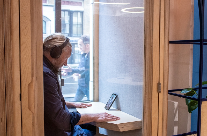 A 2-person meeting space or private conversation booth