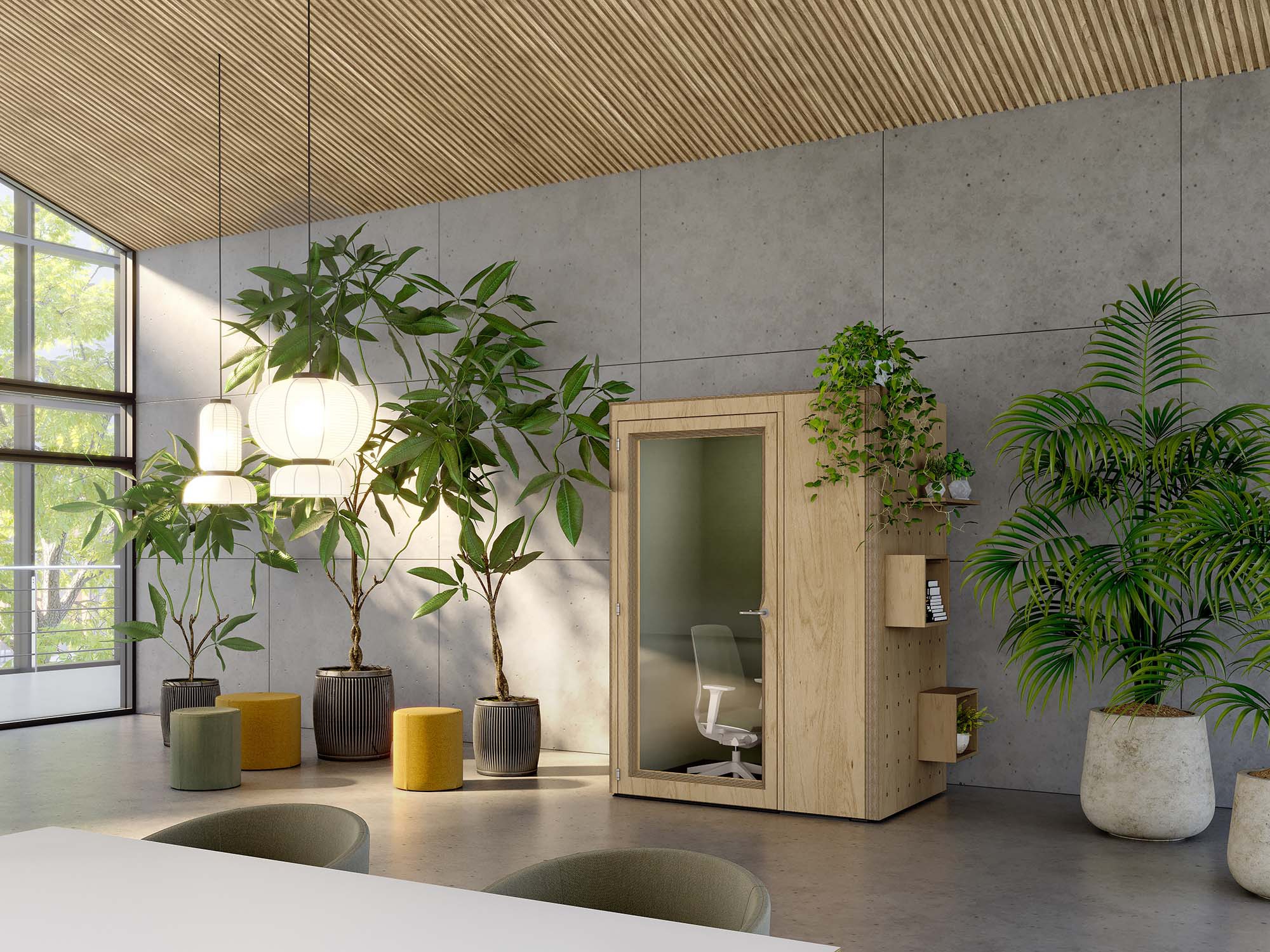 Drawing on the rich design heritage of California, the Residences range creates iconic enclosures within the workplace, providing a serene sanctuary. With five different products in the Residence family, the below gives a quick overview of the differences between them. Residence Work is a single-person, focus booth; meet the others below!