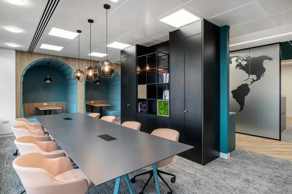A calming and muted workspace design for leading home credit company, International Personal Finance, focusing on creating a hybrid workplace
