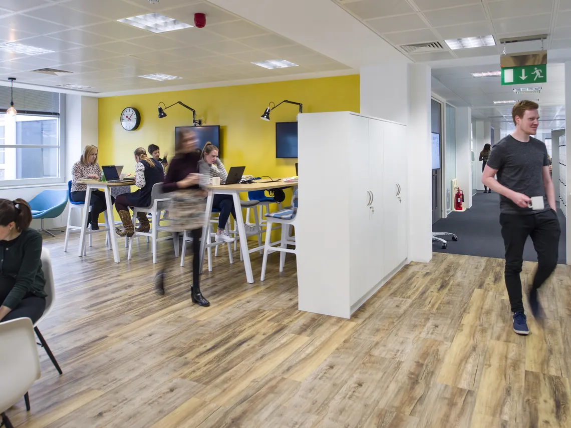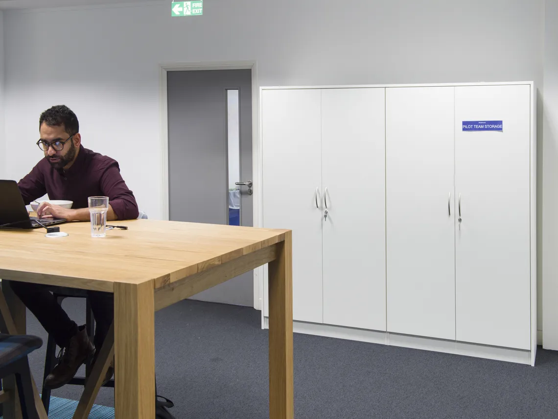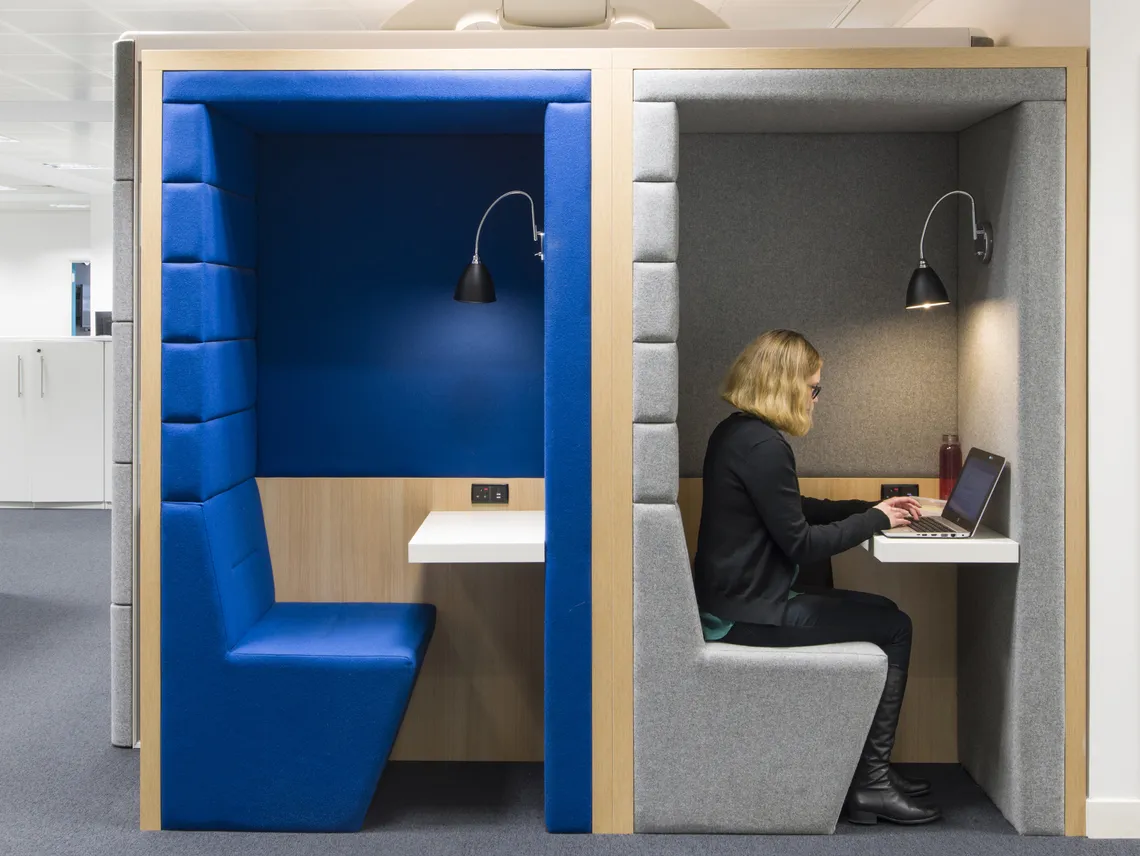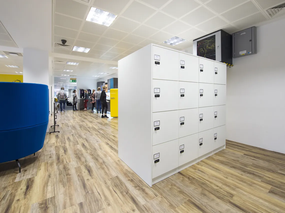 Nous avons installé des Railway carriages deux places et des Phonebooths une place pour créer des espaces de travail intimes et réservés offrant une tranquillité supplémentaire et permettant la concentration, des HotLockers pour que le personnel stocke ses affaires alors qu'ils se déplace dans les bureaux et une variété d'étagères et de modules de stockage qui permettent de conserver des bureaux aérés, rangés et clairs.