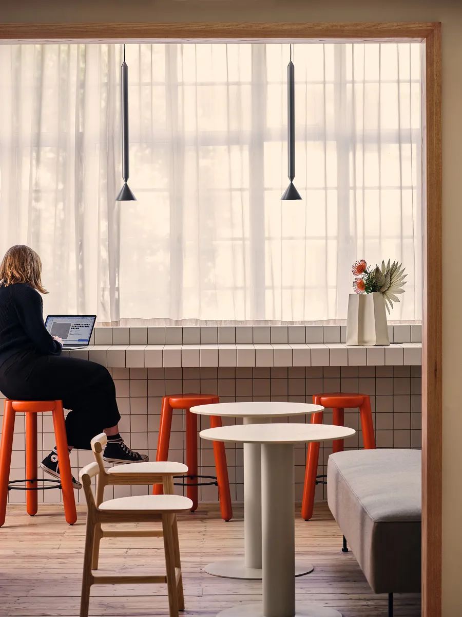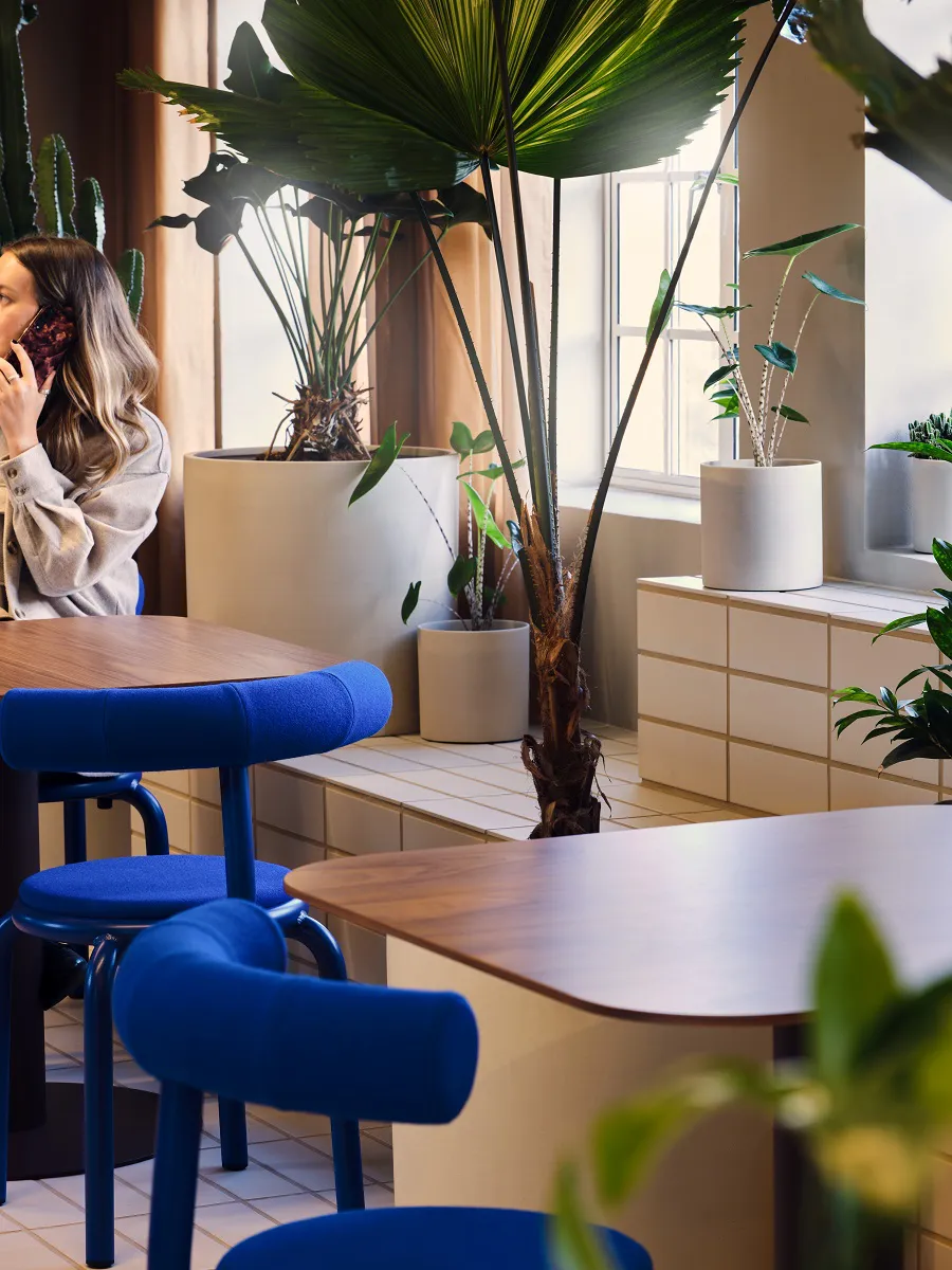 The Recharge Room to enjoy an atmospheric escape. The Oxygen Room for a boost whilst connecting with nature. The Café in olive yellow, cue that much-needed cuppa! Even a courtyard so employees can meet and work in the open inspired by the outdoors.