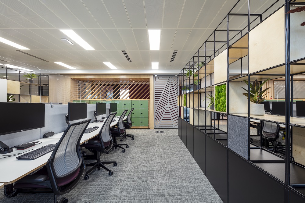 Combining the needs of an agile workspace at Arthritis Research UK, a variety of zones and biophilia, white HotLocker banks were integrated with Palisades Grid and used throughout the office to create zones for collaboration, relaxation and social gathering.