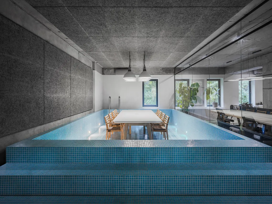Banda Agency wanted to create a comfortable working space suitable for an artistic soul whilst creating the sense that employees were anywhere else but work. In order to fulfil this requirement, Banda Creative Agency provided the creative office with several extraordinary design features, including a meeting room in the form of a swimming pool, a vibrant bar area and spacious working tables.