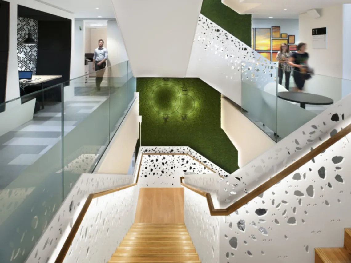 Workspace designers, Sketch Studios, have worked closely with several different suppliers, in many cases developing pioneering solutions to meet the project objectives. The project has achieved a BREEAM outstanding rating and WELL Gold Star, making it the largest office in the world to achieve these leading certifications for both being an exemplar green building as well as enhancing the wellbeing of its people.