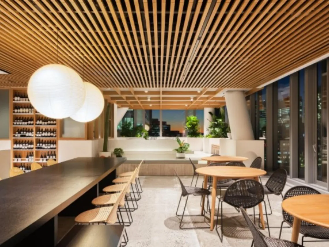 For Gensler, inspiration came from the combination of their client’s product and a typical Australian home. This inspiration was ‘sharing’. Shared space, shared memories, shared experiences. A traditional welcome mat has been embedded in to the floor at the office entrance, an ‘outdoor’ courtyard acts as an informal meeting area and the catered-for kitchen provides employees with breakfast, lunch and dinner. A true home from home experience.
