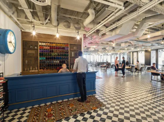 The office space spans two floors, incorporating informal meeting areas, lounges, hot desks, kitchens, private offices and phonebooths across 4,100 sq metres. JRA collaborated closely with Mindspace to create a design true to its signature boutique hospitality style, reflecting the cutting-edge style and vibrancy of the East London area.