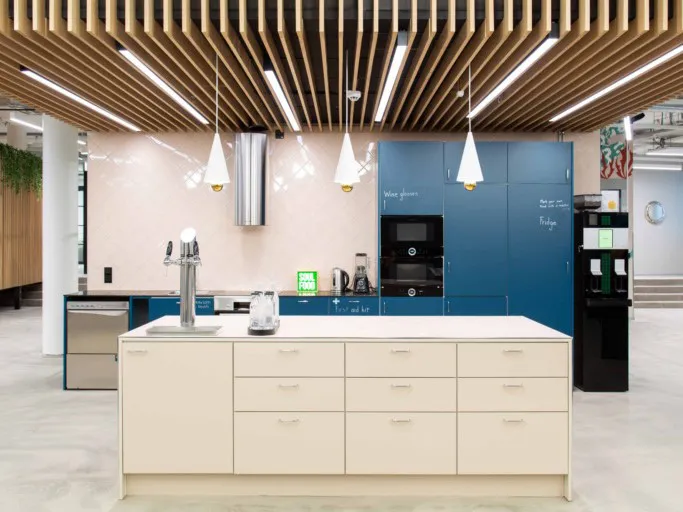 The spaces are experiential and provide personality whilst being functional. Furthermore, environmental, socio-cultural and financial sustainability were also thought through during the design process. The building was designed according to the BREEAM certification and designers chose environmentally friendly materials such as Durat composite, Econyl recycled nylon flooring and used vintage furniture, locally produced work and young entrepreneurs to create this unique and sustainable workplace.