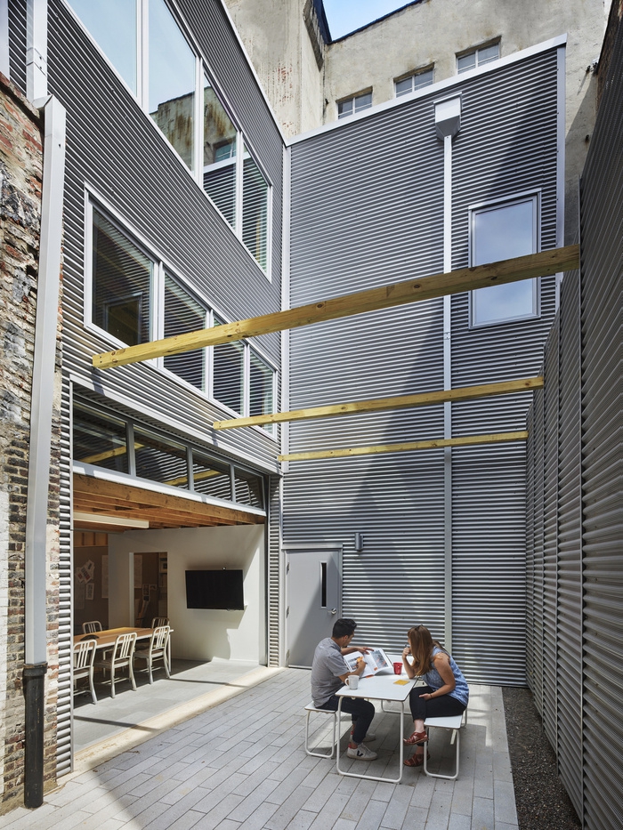 Critical elements of the new design of the studio included the introduction and optimization of natural ventilation and daylight to the deep space of the existing one-story volume.
