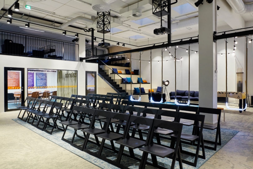 A cool and relaxing space with a raw, industrial inspired look, claimed to be the coolest tech hub in Helsinki.