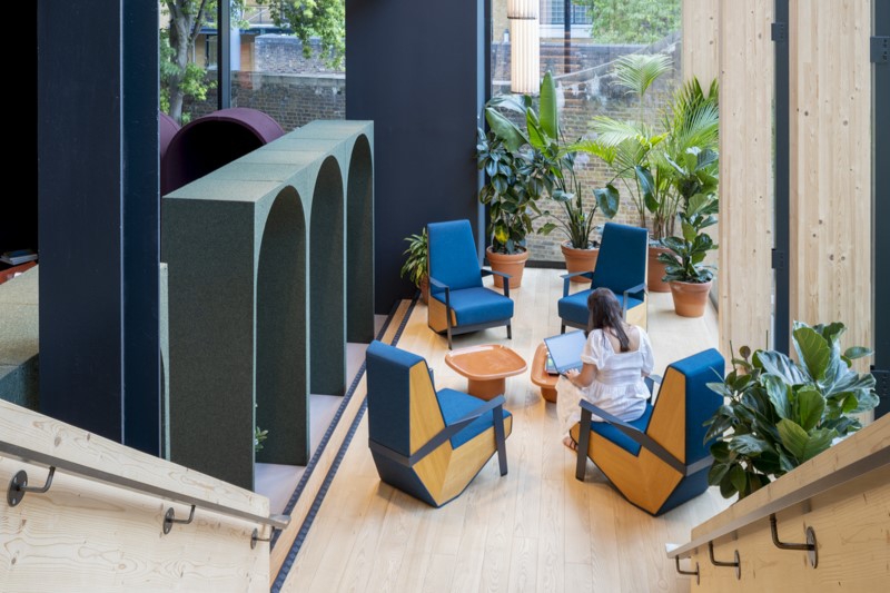 Lenovo's Farnborough office showcases the effectiveness of these nooks and according to Stephen Higgins, EMEA Director of Real Estate at Lenovo, “Our space gives us a sense of purpose and belonging.” The nooks offer a blend of functionality and aesthetic appeal, featuring deep blue double depth arches which support Lenovo employees with single-user workstations that steer away from traditional angular modularity.