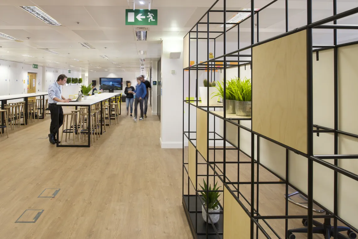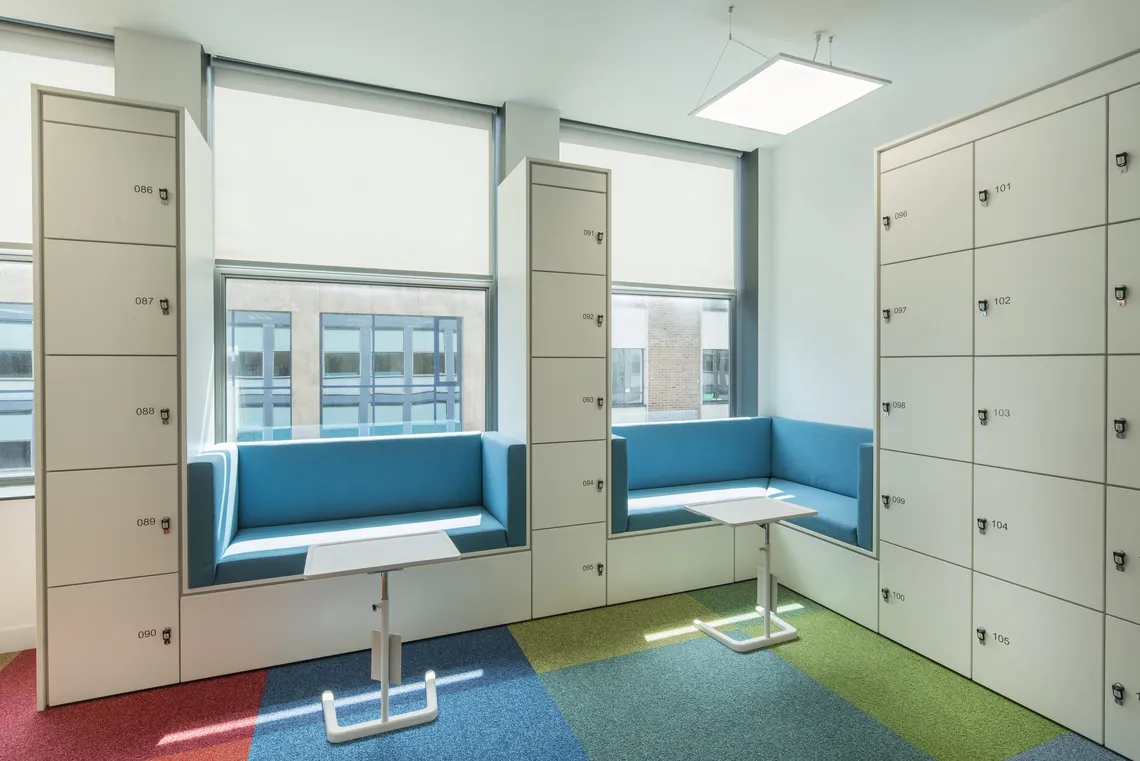 SECONDLY, windows. A view of some trees through the window is excellent for one’s wellbeing. Even a view of the sky can be a great help – not least because it really helps with creativity and “blue sky thinking”. In order to make the most of the windows in a space, keep everything as open-plan as possible and use modular furniture like our Storagewall and HotLocker systems that can fit snugly around a window without blocking any of the sunlight.