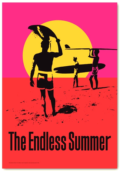 If there’s one image that sums up the spirit of “California Cool” for us, it’s the “Endless Summer” poster. It’s a piece that has been massively influential for Spacestor, because of its simplicity and its unforgettable colour scheme. For us, it really expresses Van Hamersveld’s youthful daring and complete freedom in mixing any amount of bright, vivid colour. Of his studies at the time, he remembers, “Modernism was being taught, the contemporary world. The poster engages that modernism in the colour blocks and the geometric shapes, and adding Day-Glo colour made it into pop art.” “Endless Summer” was a movie about surfing.