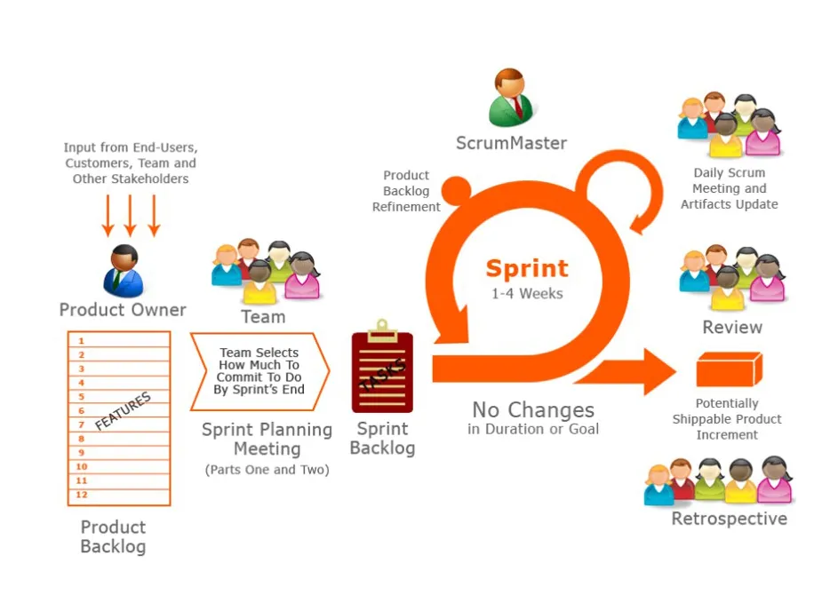 By the end of the Sprint the Team should have achieved its goal. This will be followed by a retrospective meeting about what they achieved, and how the process can be further improved – and then onto the next Sprint! This process repeats and repeats until enough of the product backlog has been cleared, the budget is finished, or the deadline is met.