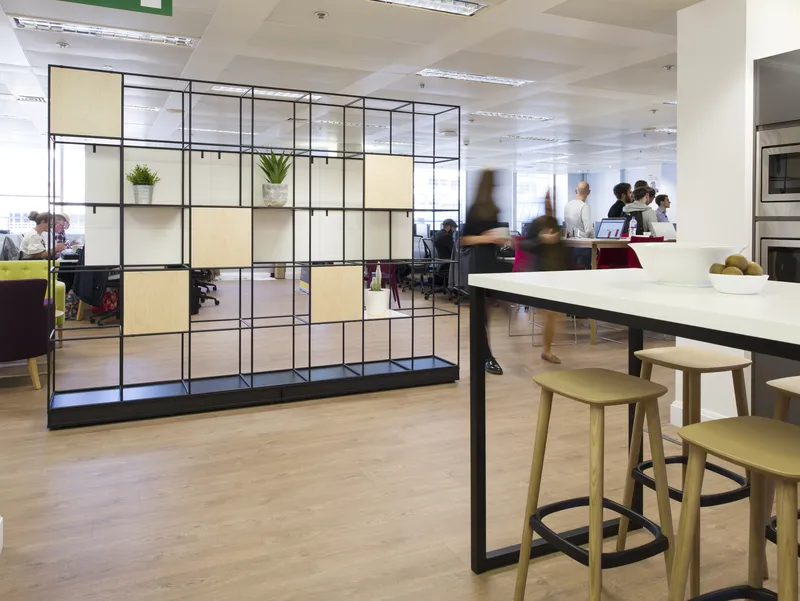 Our Palisades Grid space divider became the centerpiece of this workspace, used as a modernist architectural feature as…