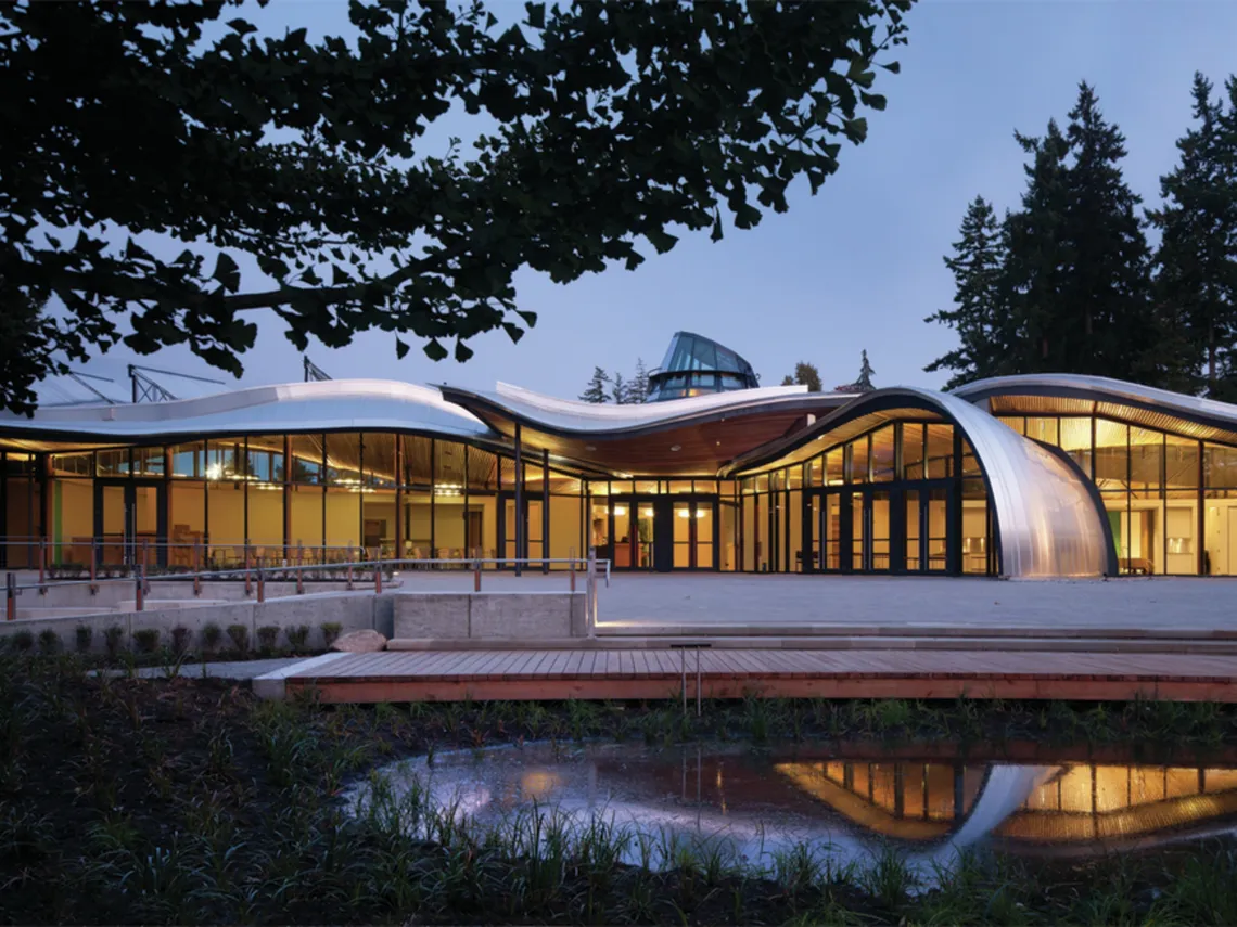 Not only do living buildings have a net-zero impact on the environment, they also save money for their owners. But why not go a step further and design buildings that give back to nature? Why not regenerate lost wildlife habitats and watercourses through design? Vancouver’s VanDusen Botanical Garden Visitor Centre offers a great example of how to do just that.