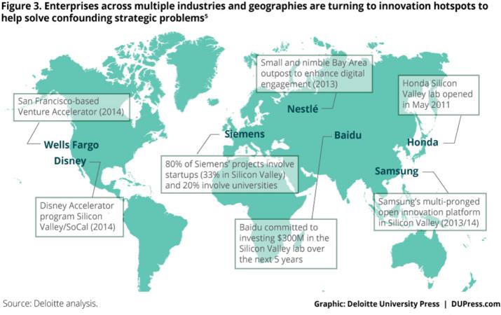 3. Having built a reputation as an innovative and collaborative environment, Silicon Valley then boosted the next generation of talent. Its workspace and office culture was central to this. Personalised workspaces, which brings together collaboration and private working epitomises the culture of innovation in Silicon Valley. These extensions of the company brand appealed to investors and employees alike.