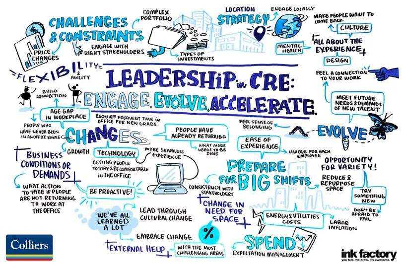 Discussions on Leadership in CRE, with some of the best-known leaders in the industry at Nestle, EY, Nokia, Oracle, and Colliers, produced the insightful graphic below; encouragement to both accept change and prepare for big shifts. The future holds technological developments, the exploration of AI, ESG commitments and a realization of ‘The New Resilient Workplace’ because the pandemic has changed the way we think.