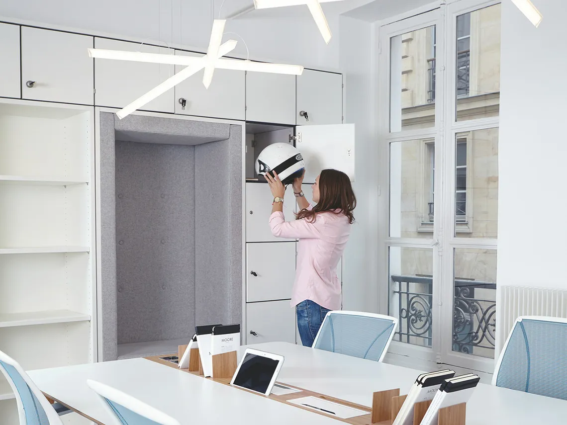 The personal workspace is becoming smaller. In 1985, the average workspace was 400 square feet per employee. By 2030, it’s expected to be only 150 square feet. This means that office space is going to have to be used much more efficiently; storage space, in particular, is going to have to change. The way that we approach storage is also changing, having evolved from bulk storage to personal storage. In the past, office storage was associated with huge vaults of documents and records, but these have since been converted to electronic files. Paperless offices are becoming more common: 33% of offices are “nearly there” with becoming paper free. Today’s storage must adapt to suit the needs of employees: in the gig economy, storage units have to be able to be shared by several workers, and must provide each with a place to store their things even when they’re travelling or working remotely. So, how to adapt to these changes? The solution is a storage wall.