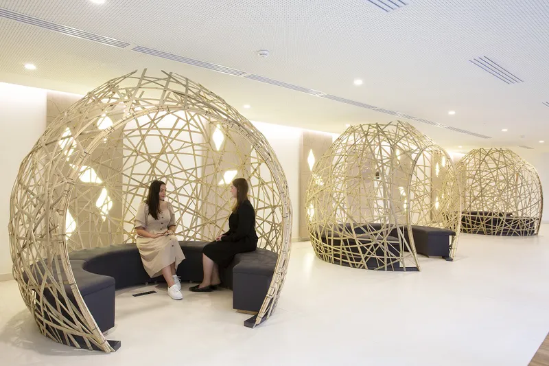 Plug-and-play, with integrated power, screen and charging options, Portals Connect can be customized with a huge range of cladding and upholstery options, allowing it to blend and become part of any design scheme. Step-free access, acoustic protection and adjustable lighting supports greater accessibility and contributes towards making the workplace easier to navigate for today’s diverse workforce.